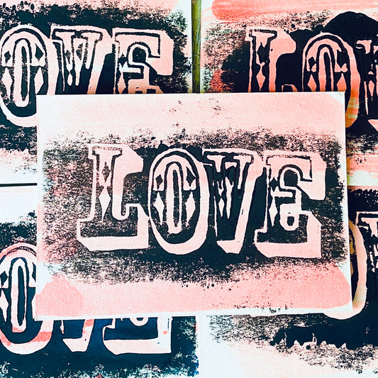 Postkarte Linoldruck Original // Love