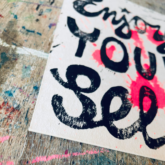 Postkarte Linoldruck Original // Enjoy Your Self