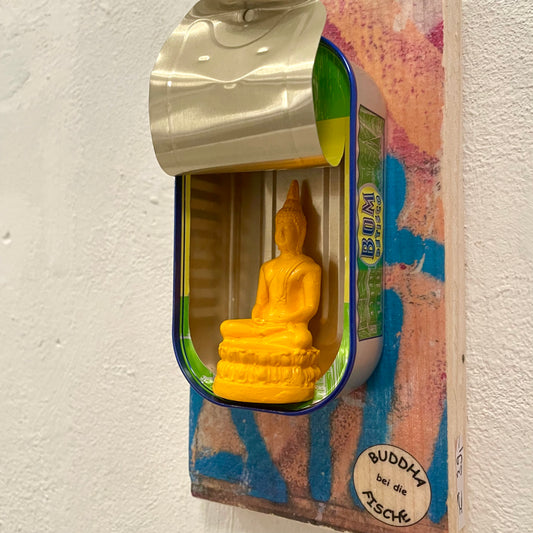 Buddha bei die Fische // orange gelb / // Wandobjekt