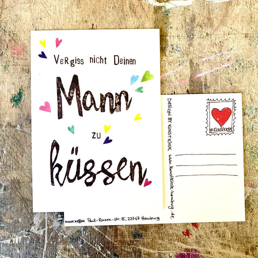 kuki Postkarte "Vergiss nicht deinen Mann zu küssen"