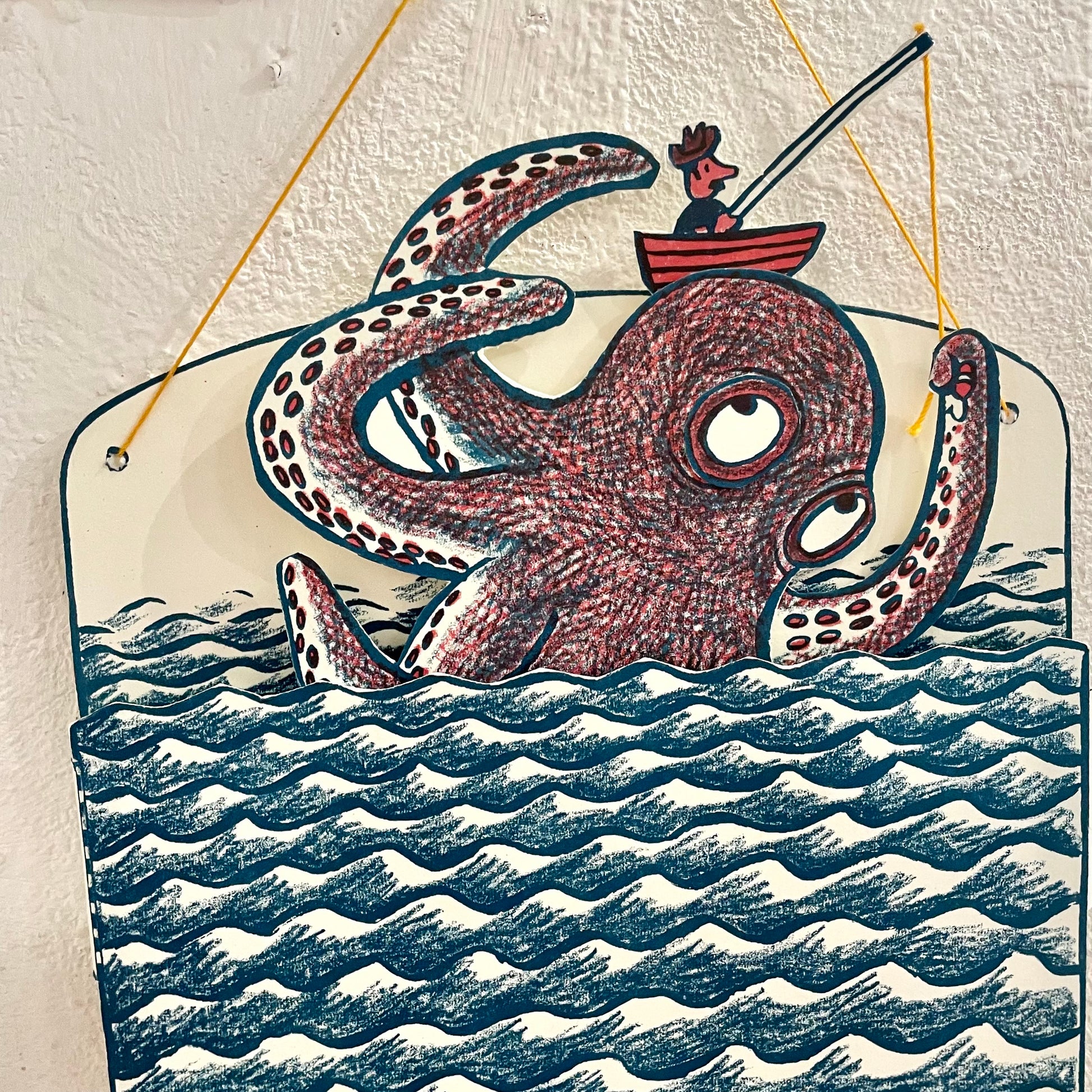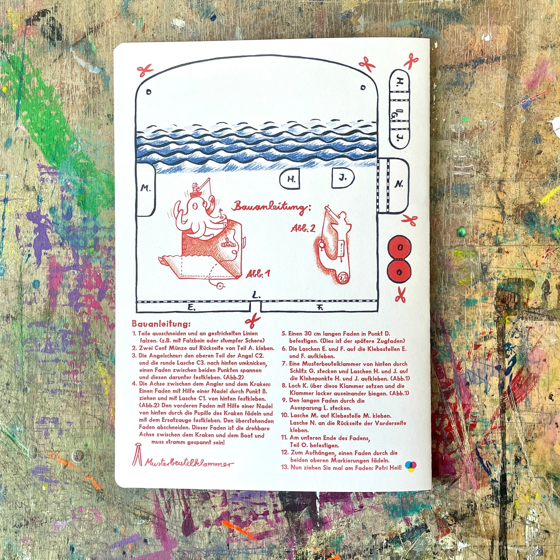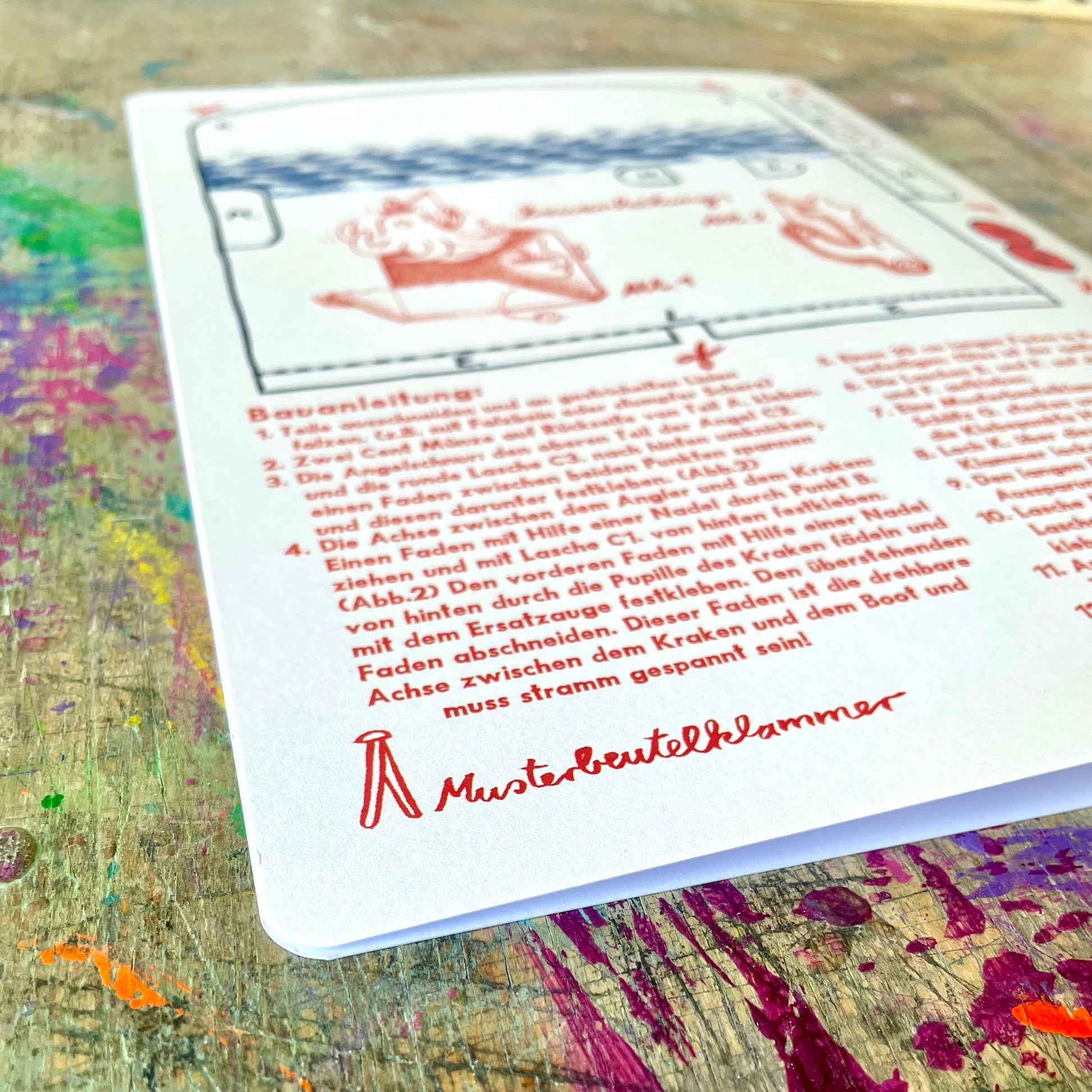 Ein unheimlicher Bastelbogen mit einem kleinen Boot und einem Riesenkraken.