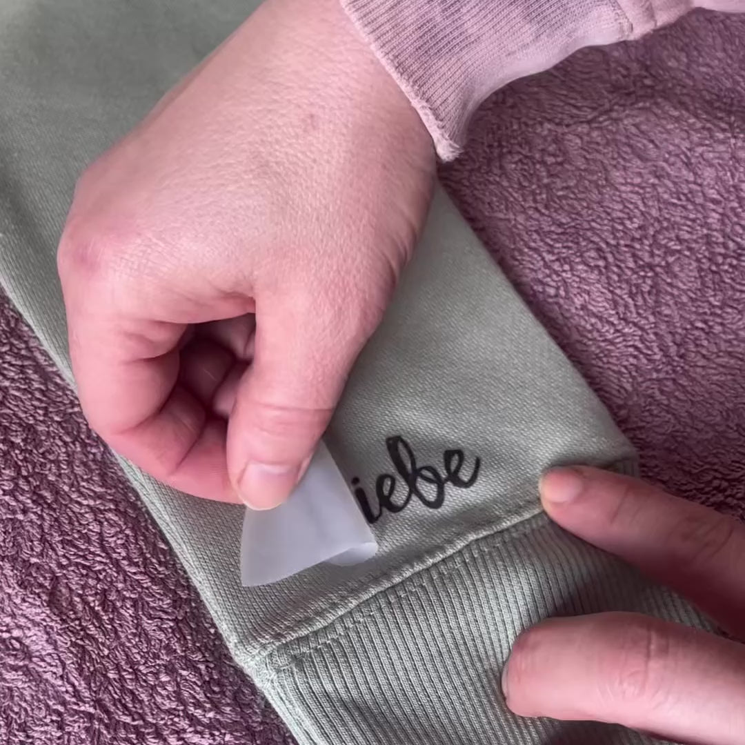 Nach dem Abkühlen vorsichtig die Transferfolie abziehen und, um sie zu fixieren, noch einmal über das Motiv bügeln.