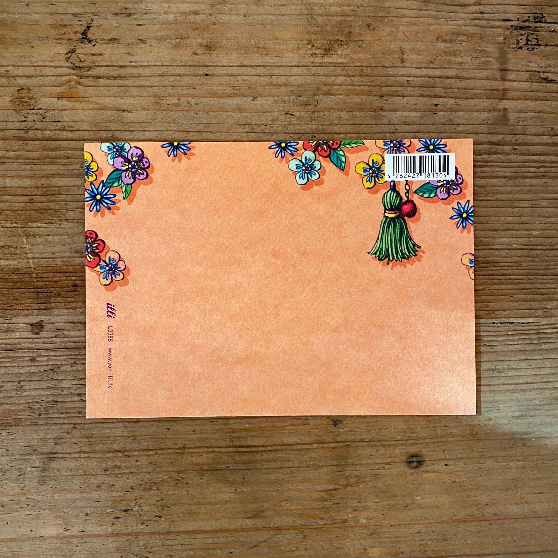 Wunderschöne gezeichnete wurde diese Postkarte von Ilka Schmitt. Mehr erfahrt ihr über die Künstlerin Lili bei und unter dem Menüpunkt Künstler*innen.