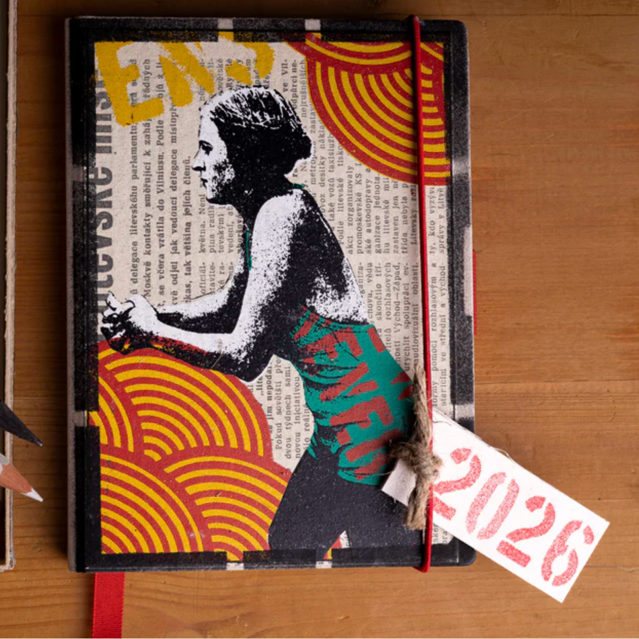 Im Inneren warten Wochenübersichten von Januar bis Dezember, ein paar Seiten für deine Gedanken, Skizzen oder To-Do-Listen – alles gedruckt auf 100 % Recyclingpapier. Das kompakte Format (113 x 154 mm) passt perfekt in jede Tasche, das stabile Gummiband hält alles zusammen. Und: Ein kleiner, charakteristischer Deafmessanger-Bleistift ist mit Schlaufe direkt am Buch befestigt – bereit für spontane Geistesblitze.