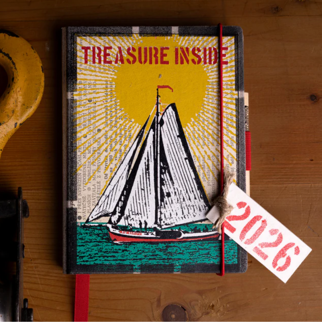 Was dieses Tagebuch wirklich besonders macht? Die liebevollen Fundstücke, die in jedem Exemplar stecken: alte Fotos, Zeitungsschnipsel, Retro-Tickets oder handgeschriebene Notizen, die zufällig und doch irgendwie genau richtig sind. Dazu gibt’s eine kleine Tasche aus recyceltem Magazinpapier für Erinnerungen zum Aufbewahren und ein Aufkleber-Set, mit dem du deine Seiten personalisieren kannst – ob Lieblingszitate, Lieblingscafés oder „heute einfach nix tun“.