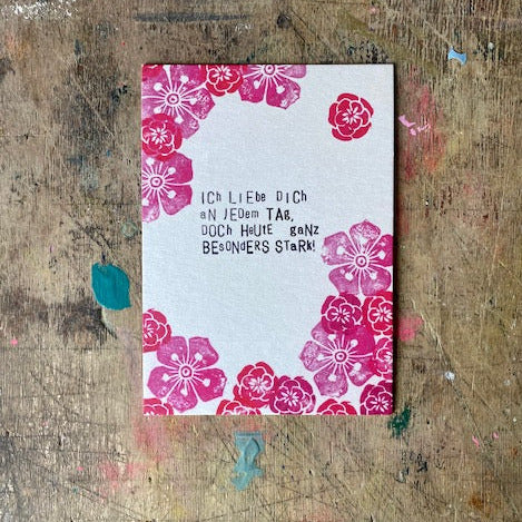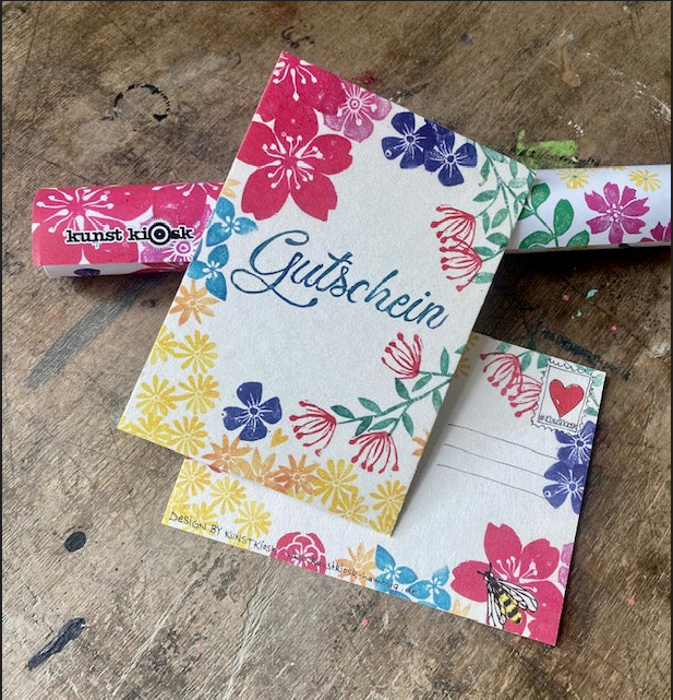Das Motiv ist ursprünglich aus selbstgeschnitzten Stempeln von Hand und mit Liebe entstanden.
