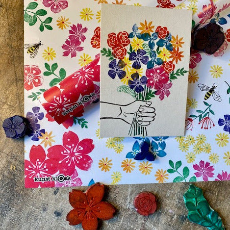 This design originates from hand-carved stamps crafted with love.