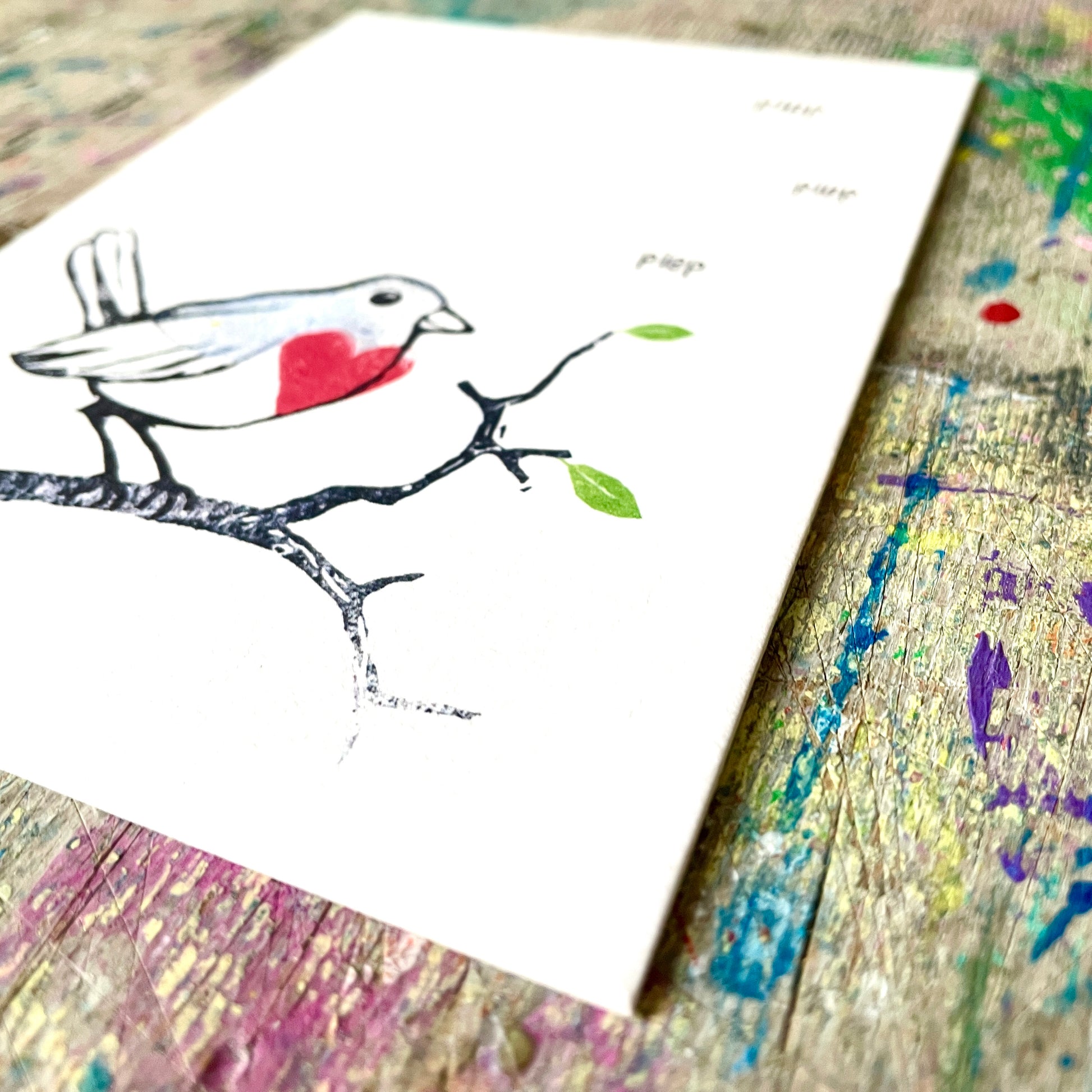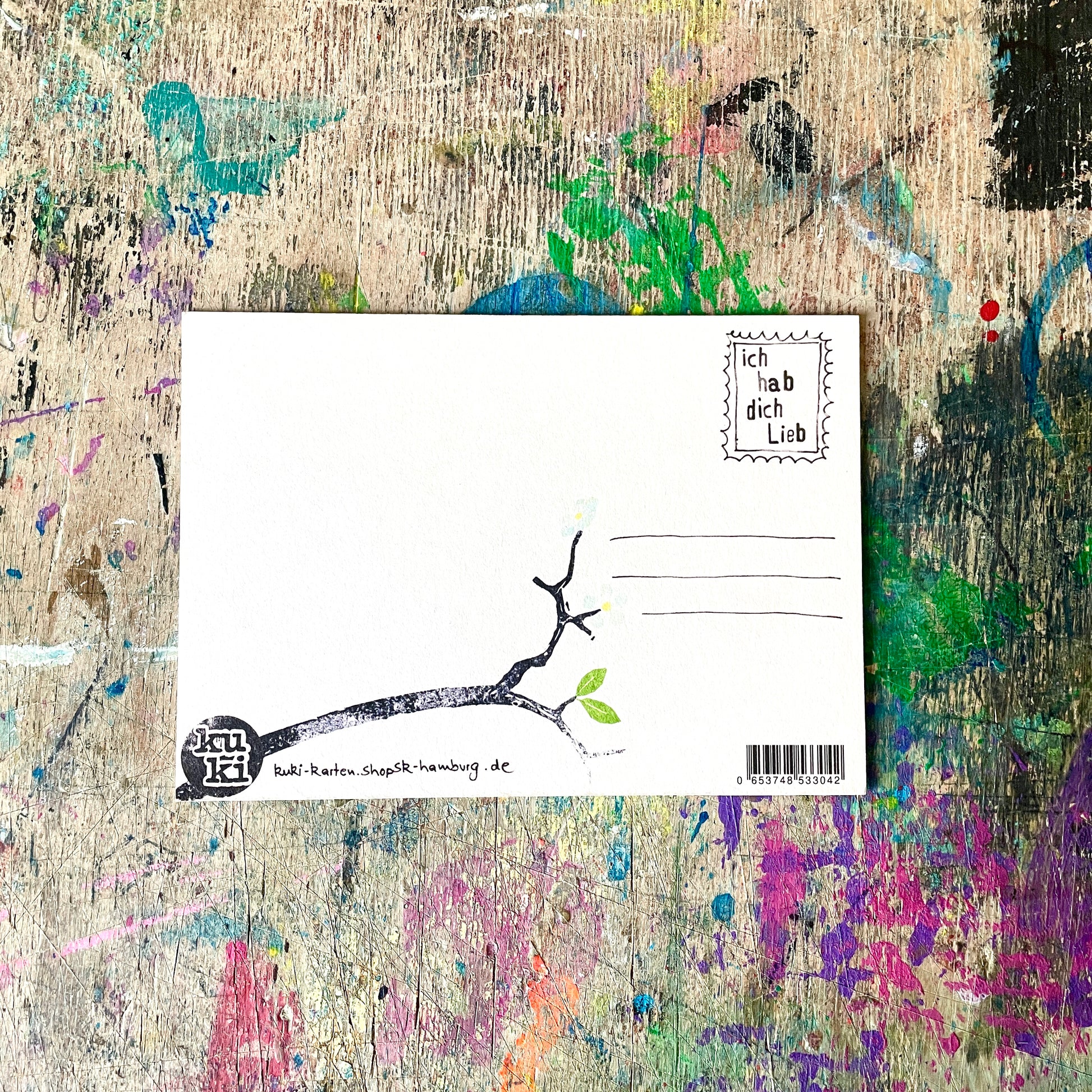 Und voilà, frisch aus der Kuki-Werkstatt gibt’s was Neues! Manchmal braucht’s nicht mehr als ein kleines ‘Piep’ und ein Herz im Federkleid, um jemandem den Tag zu versüßen. Also hier ist sie, die neue Karte, die einfach gute Laune verschickt. Und für deine persönlichen Worte ist hinten drauf natürlich auch noch genug Platz!