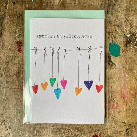 Unsere extrem beliebte Herzgirlanden-Karte eignet sich für viele Anlässe.