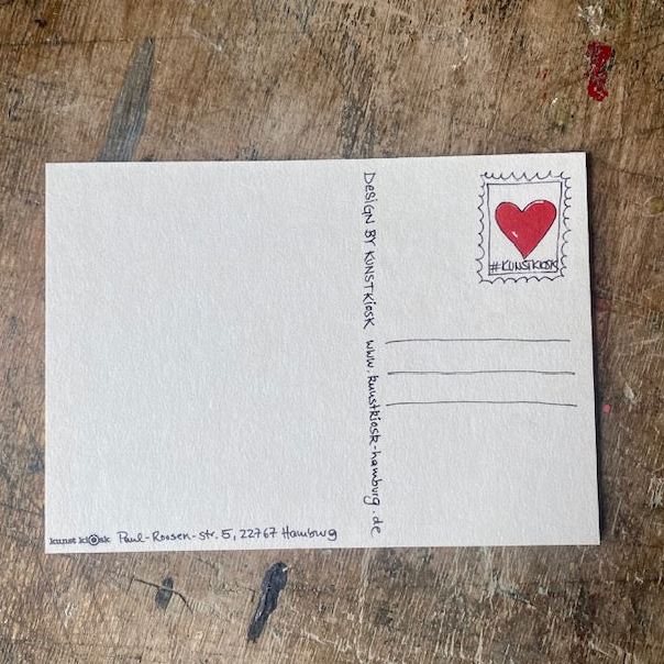 Das Motiv ist ursprünglich aus selbstgeschnitzten Stempeln von Hand und mit Liebe entstanden.
