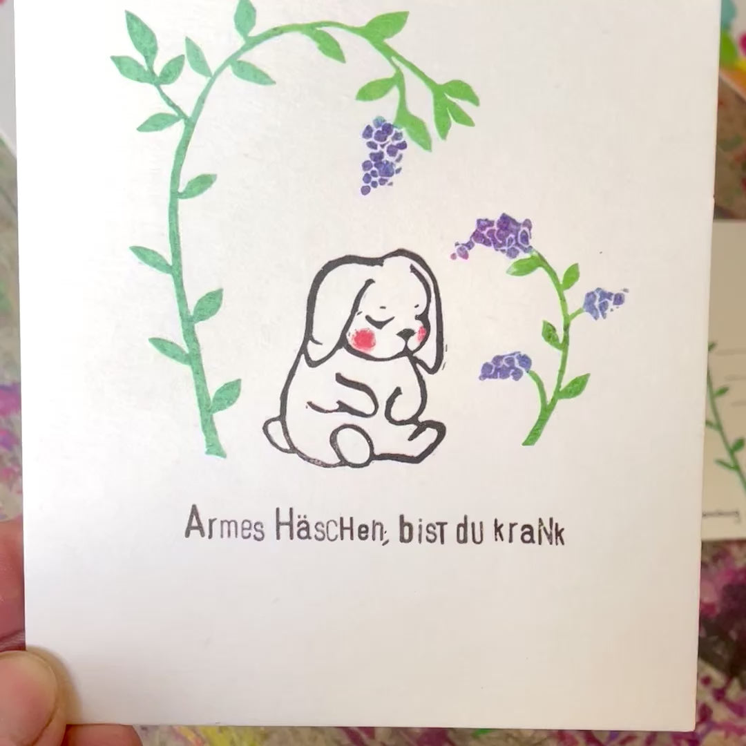 Ob Schnupfen, schlechte Laune oder einfach ein doofer Tag: Diese Postkarte ist wie ein warmes Kuscheltier im Briefumschlag und die ideale Geschenkidee für kranke Häschen.