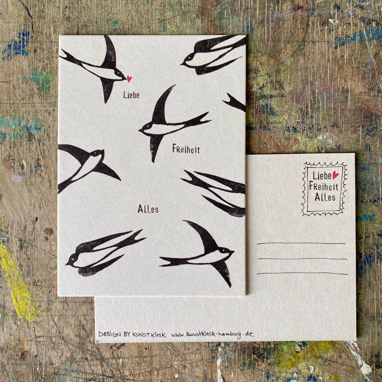 kuki Postkarte „Liebe, Freiheit, Alles“