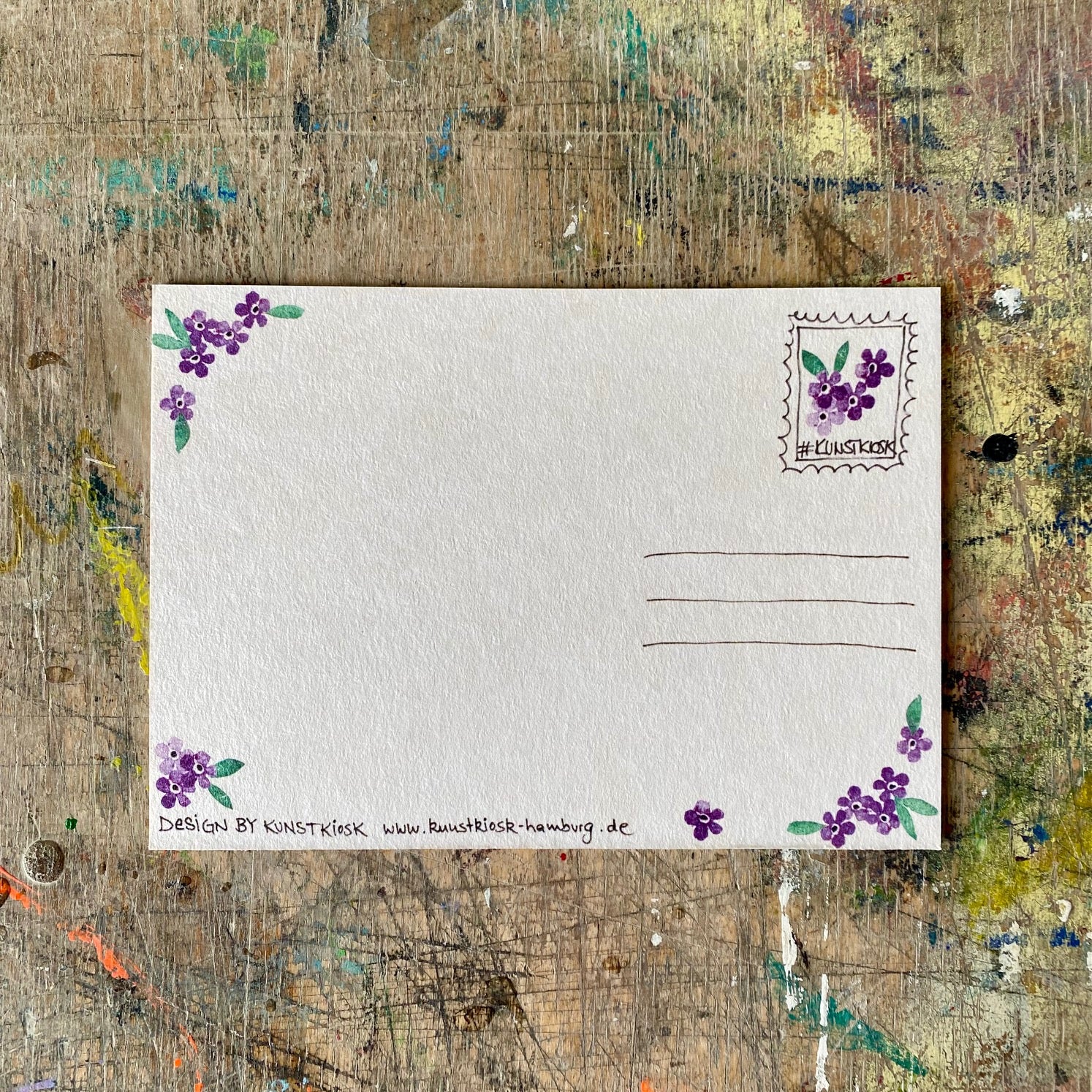 Das Motiv ist ursprünglich aus selbstgeschnittenen Stempeln von Hand und mit Liebe entstanden.