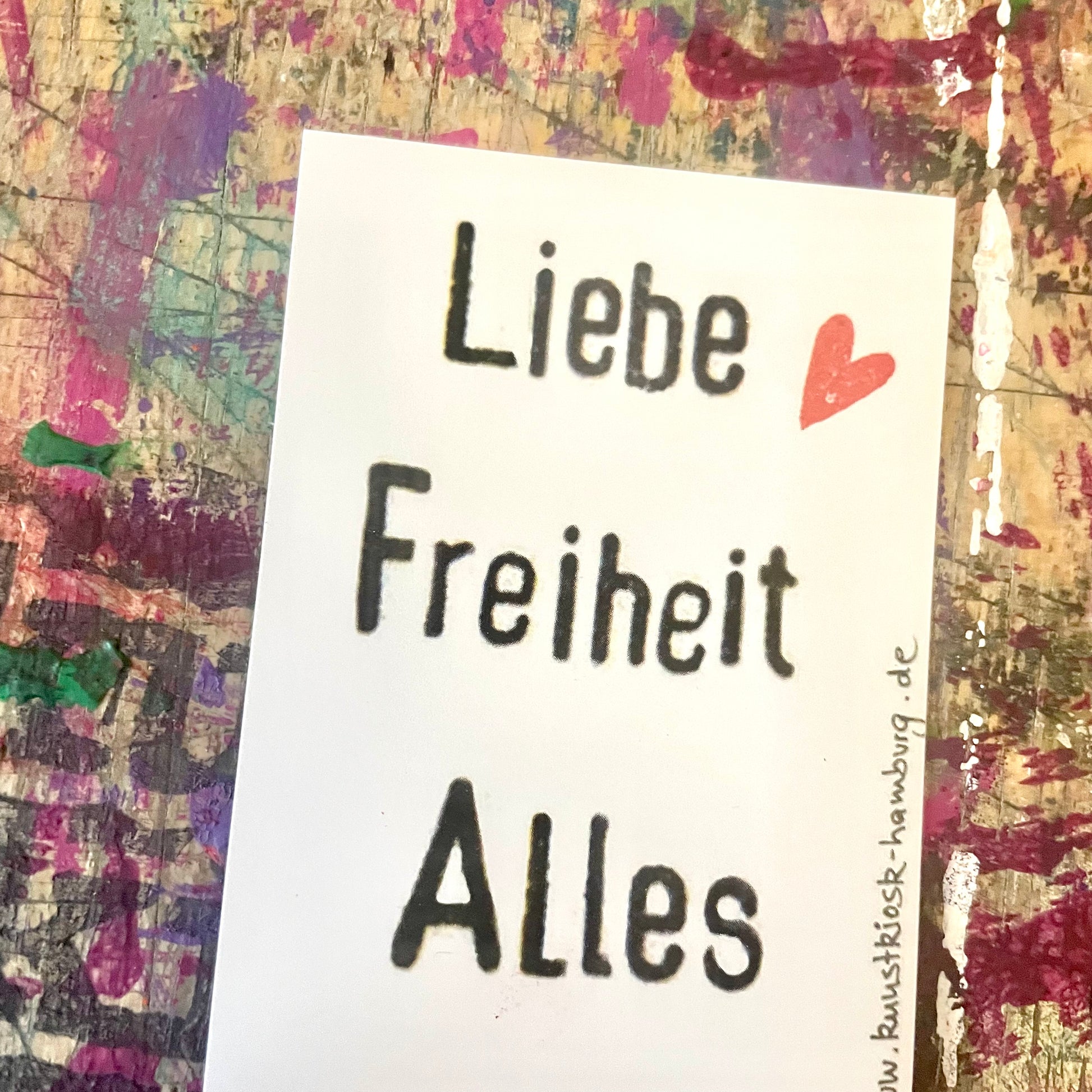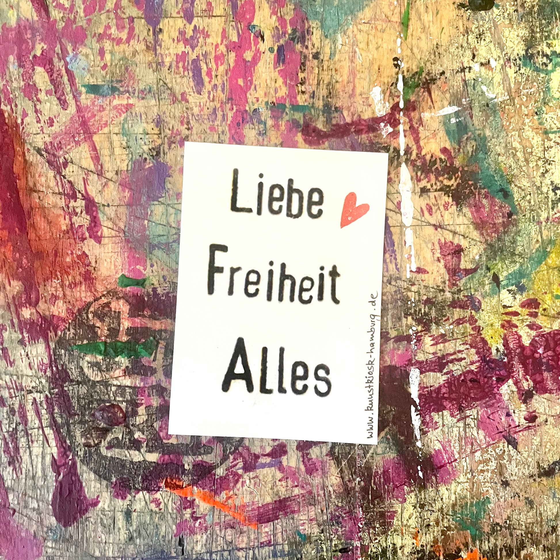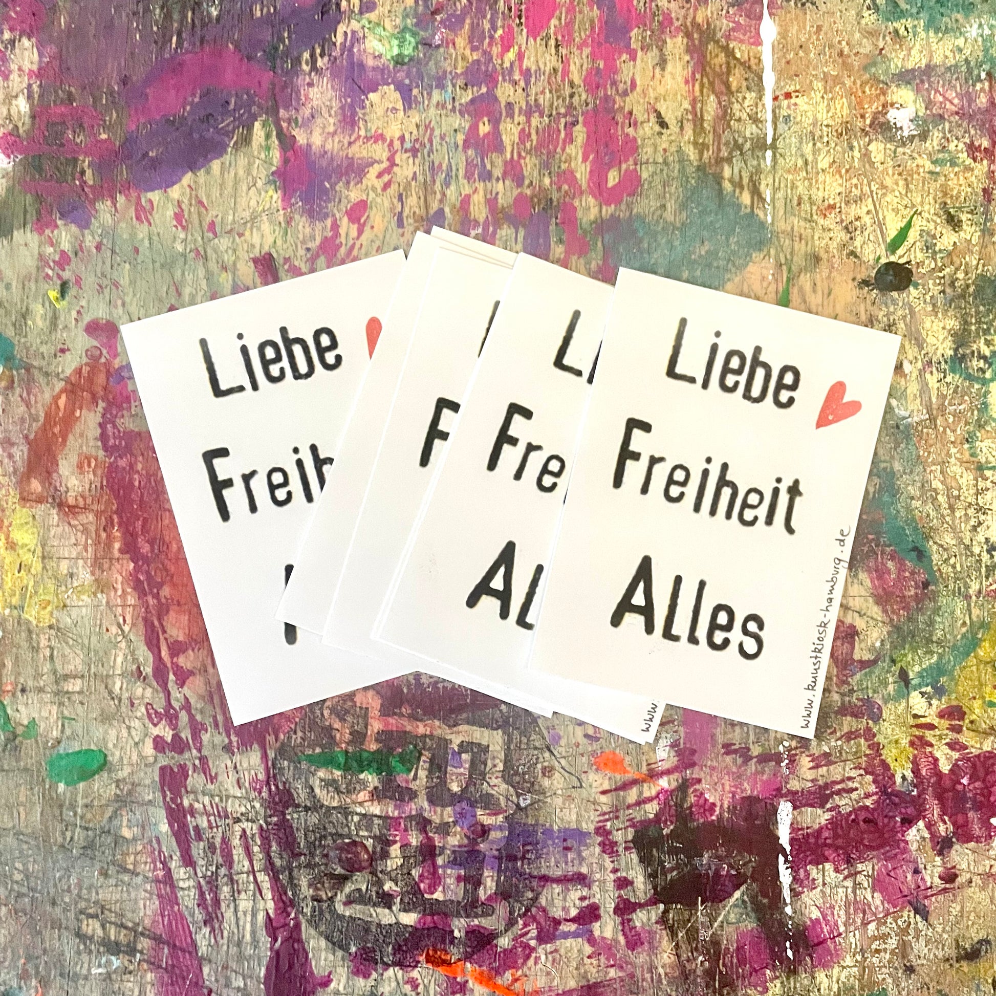 Hier findet ihr jetzt den NEUEN„Liebe, Freiheit, Alles“-Aufkleber, der mit einem Augenzwinkern und ganz viel Herz daran erinnert, worauf es wirklich ankommt. Diese kleinen, wetterfesten Sticker in 52 x 74 mm bringen handgeschnitzten Stempel-Charme direkt aus Deutschland in die Welt hinaus. Perfekt für alle, die ihren Kund:innen ein Stück liebevolle Botschaft und ein bisschen Freiheit zum Aufkleben mitgeben wollen.