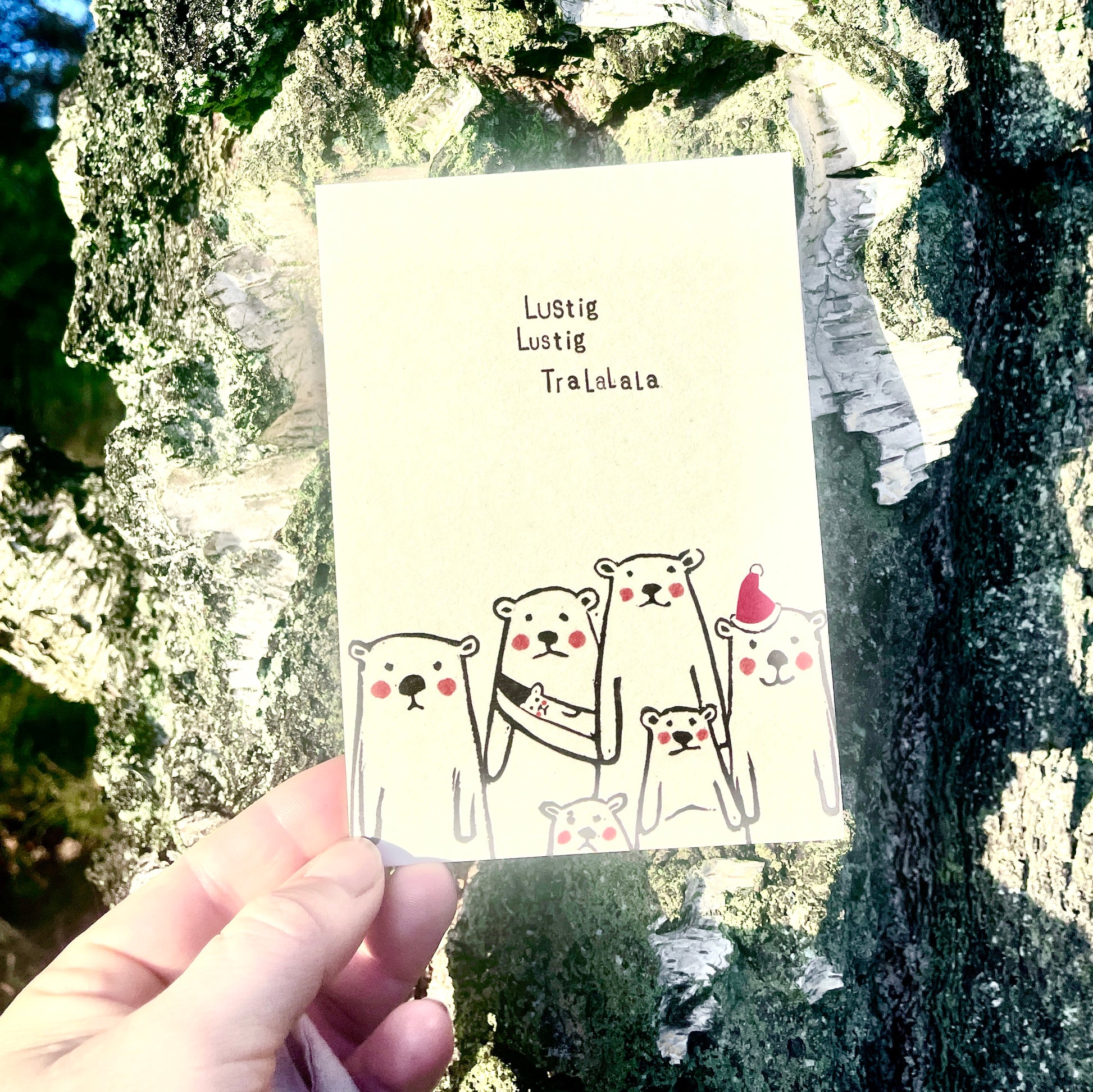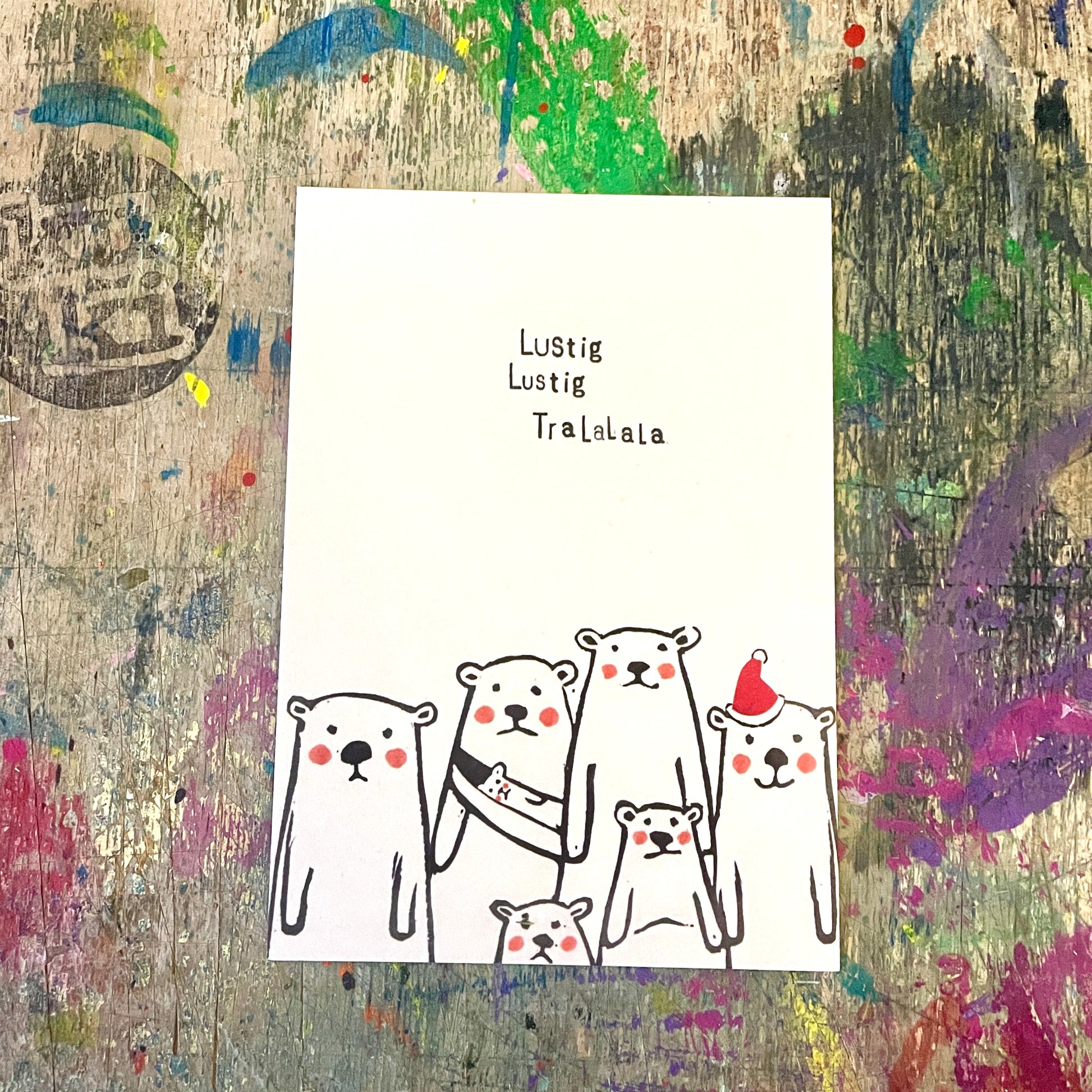 kuki Weihnachtspostkarte Bären Karte "Lustig Lustig Tralalala"