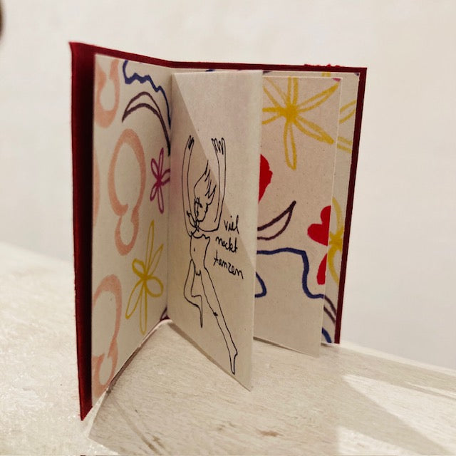 Kaya Kopp bastelt aus ihren winzig kleinen Originalen diese Minizines: Ein Fürimmer Produkt aus dem Hause Kaya. Winzige Zeichnungen, winzige Meinungen und ab uns zu ein gut versteckter winziger Scherz. Manche Themen kehren wieder, andere sind in nur einem Zine abgehakt.