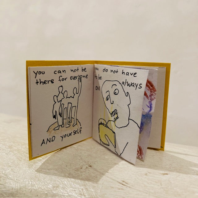 Kaya Kopp bastelt aus ihren winzig kleinen Originalen diese Minizines: Ein Fürimmer Produkt aus dem Hause Kaya. Winzige Zeichnungen, winzige Meinungen und ab uns zu ein gut versteckter winziger Scherz. Manche Themen kehren wieder, andere sind in nur einem Zine abgehakt.