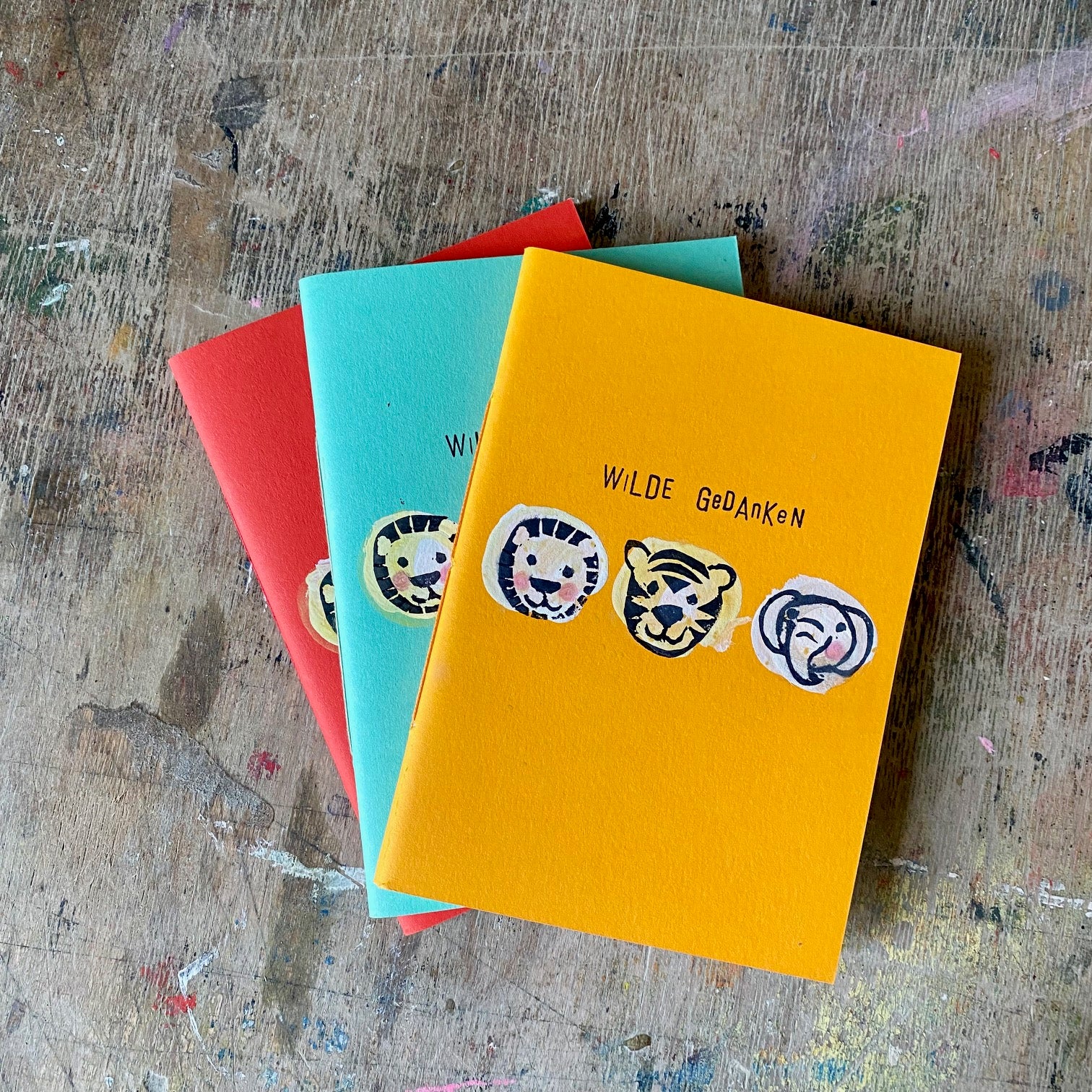 Diese handgefertigten DinA6-Notizbücher stammen aus einer, "Ein-Mann“-Buchbinderei im schönen Wendland, und werden von uns bedruckt. Die Stempel, die wir dafür benutzen, sind auch von uns geschnitten. Durch die unterschiedlichen Drucke entsteht jedesmal ein neues Unikat – so ist jedes der kleinen Notizbücher etwas anders! Mit dem „schlichten" Design passt das kleine Heft zu jeder Gelegenheit und machte es zum perfekten Begleiter für alle Alltagsnotizen oder wilden Gedankenblitze!