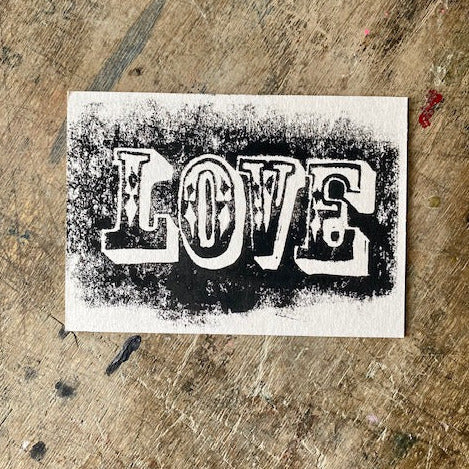 Diese Karte wurde mit geschnittenem Linol handgedruckt.