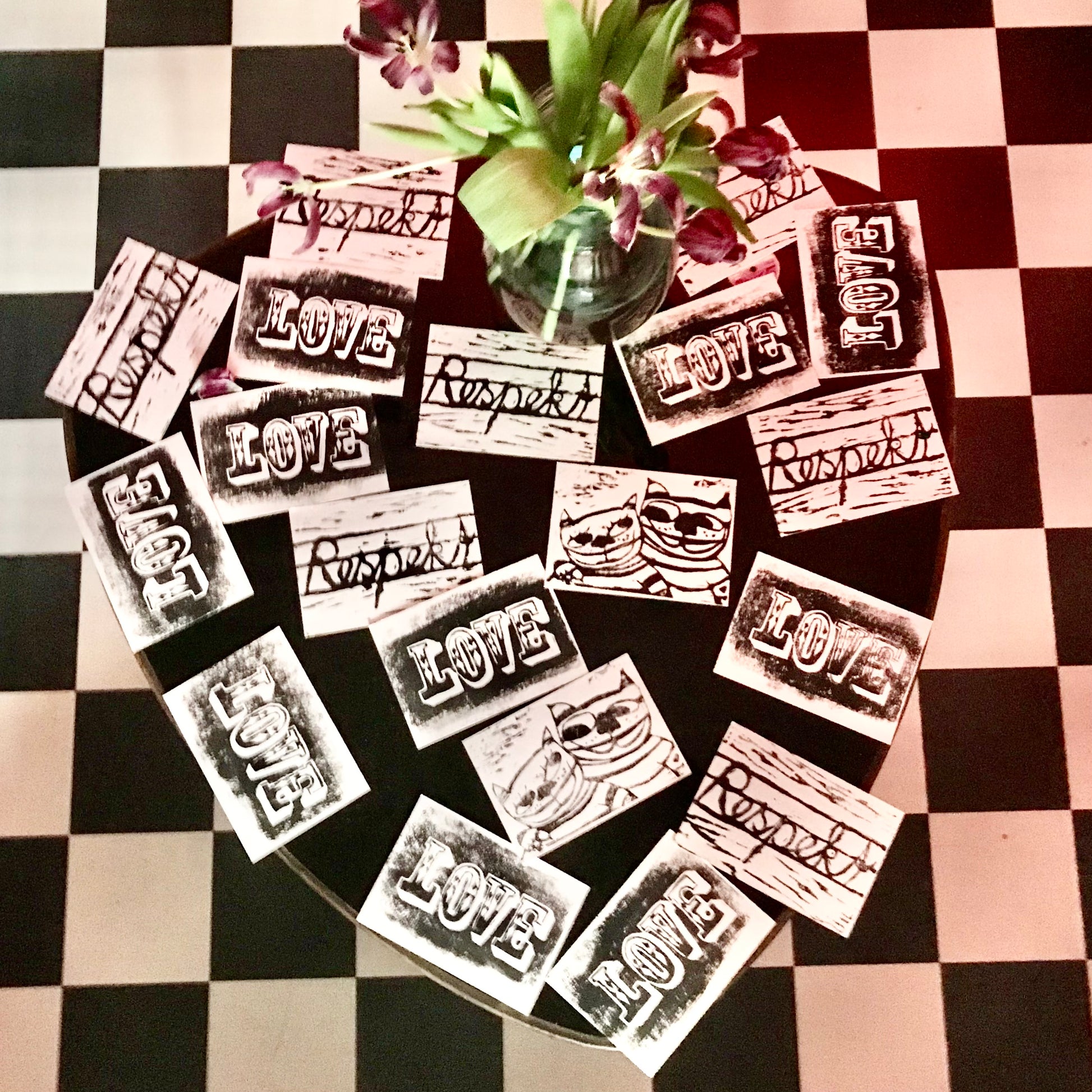 Diese Karte wurde mit geschnittenem Linol handgedruckt.