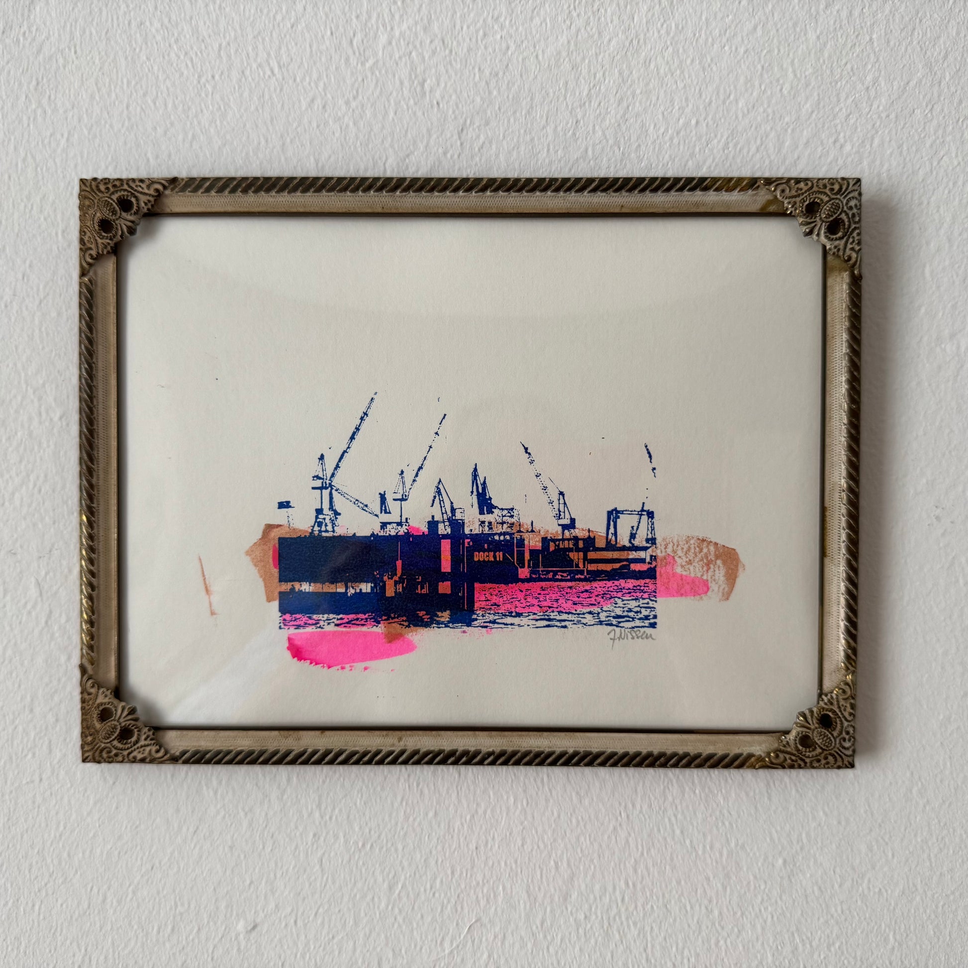 Johanna Nissen bearbeitet ihre Fotos weiter und gibt jedem beliebten Hamburger Motiv knallige Akzente. Die Siebdrucke werden von ihr liebevoll handsigniert und mit passenden Vintage Rahmen versehen.Die meerverliebte Johanna Nissen begeistert sich für den Norden und seine maritimen Motive.