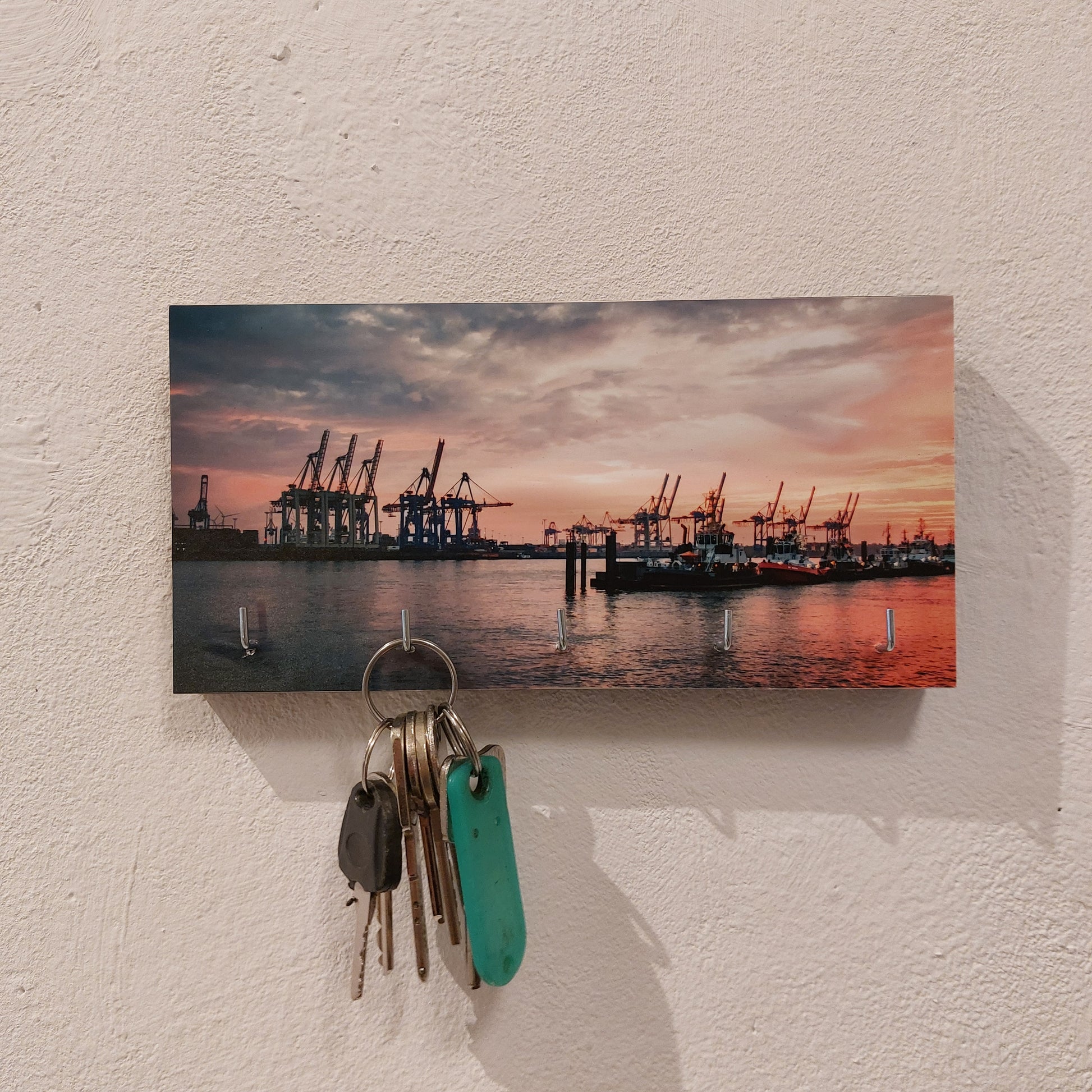 Skyline Hamburg Abendrot // Schlüsselbrett Kila Photography