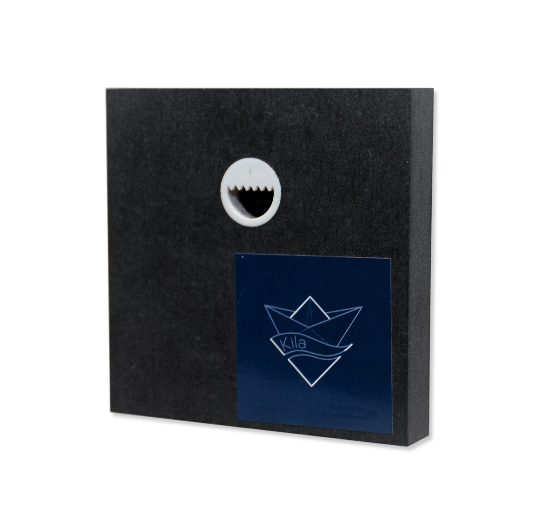 Zur Aufhängung dient ein Loch auf der Rückseite, welches mit einem Haken versehen ist.