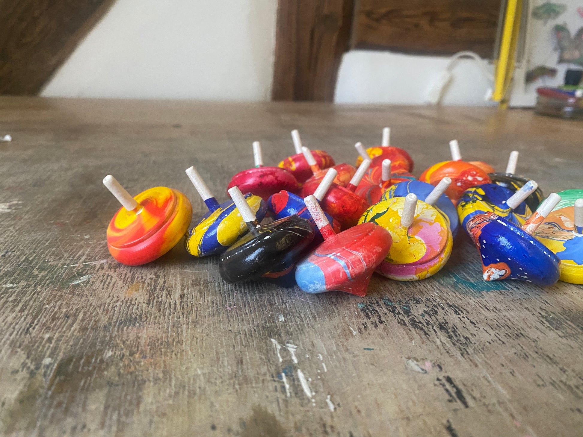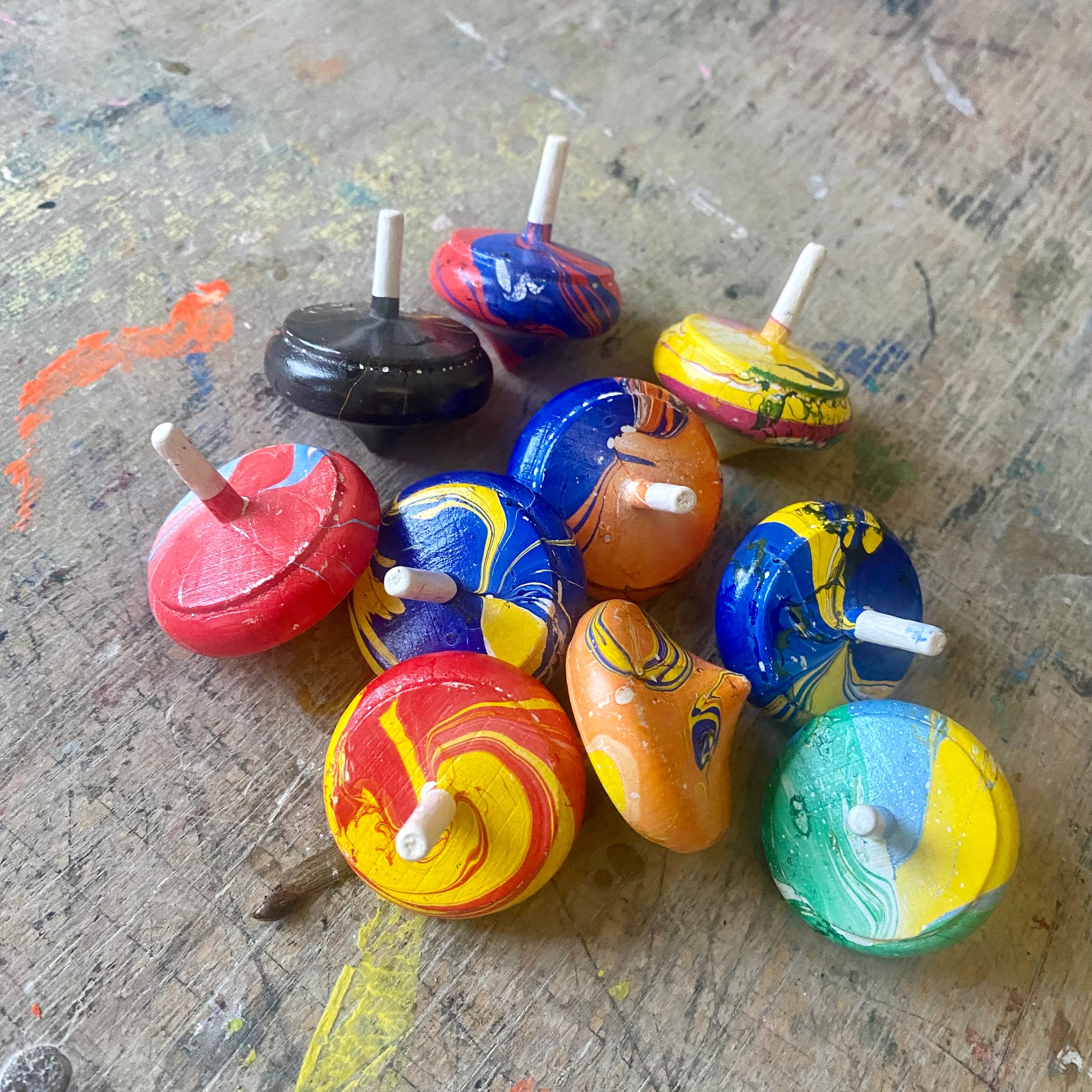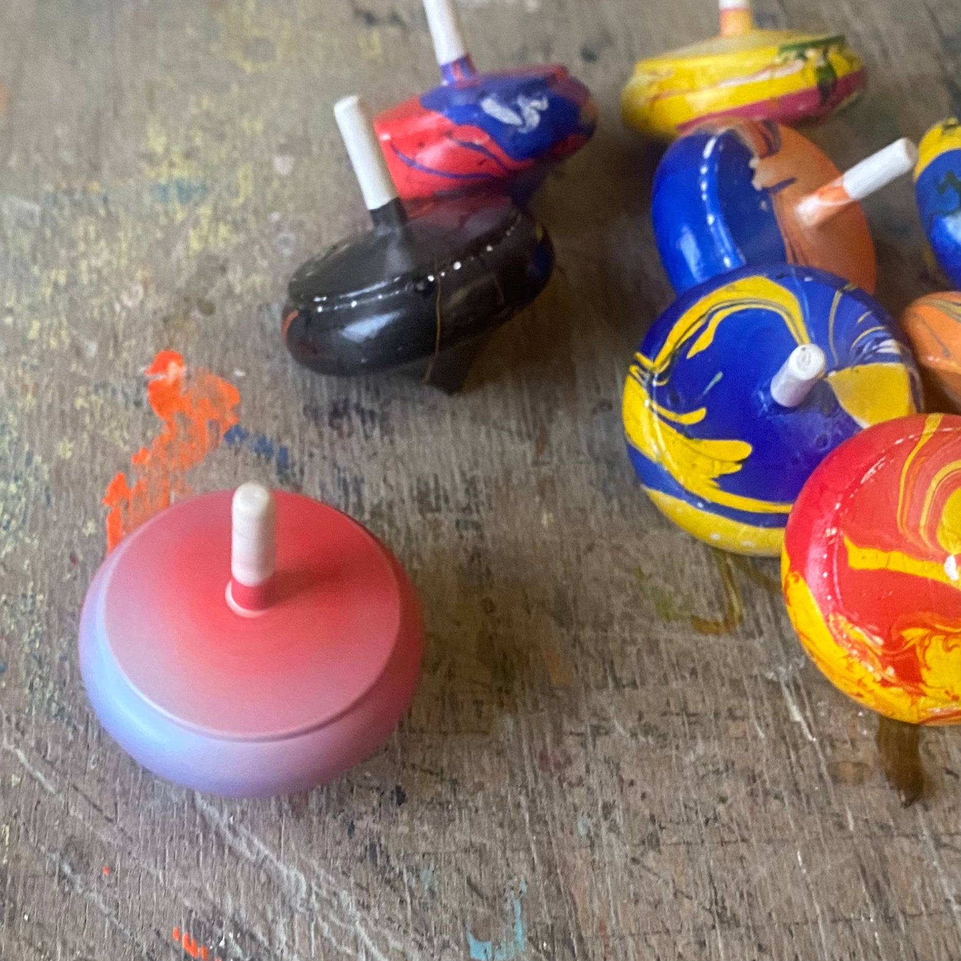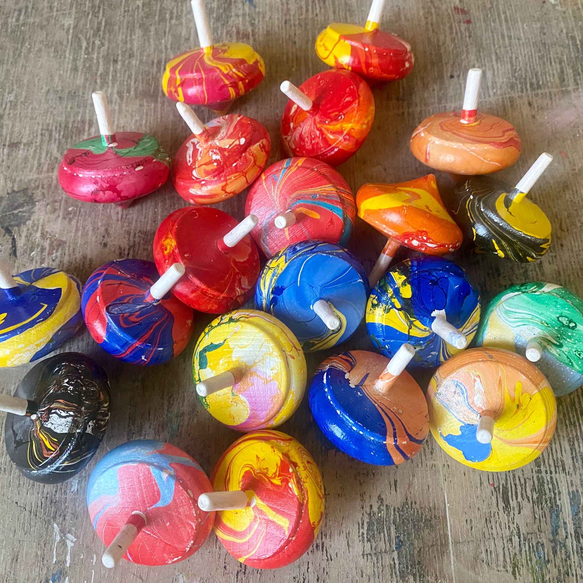 Handgefertigte Holzkreisel.
