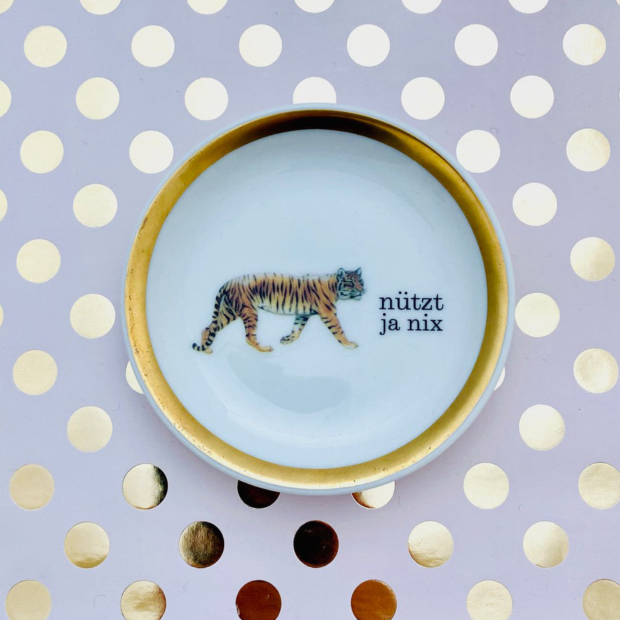 Ein Teller für alle, die mitten im Chaos ruhig bleiben – und sich denken: Nützt ja nix. Der charmante Mini-Wandteller von Herr Fuchs bringt genau diese Haltung auf den Punkt – samt lässigem Tiger.