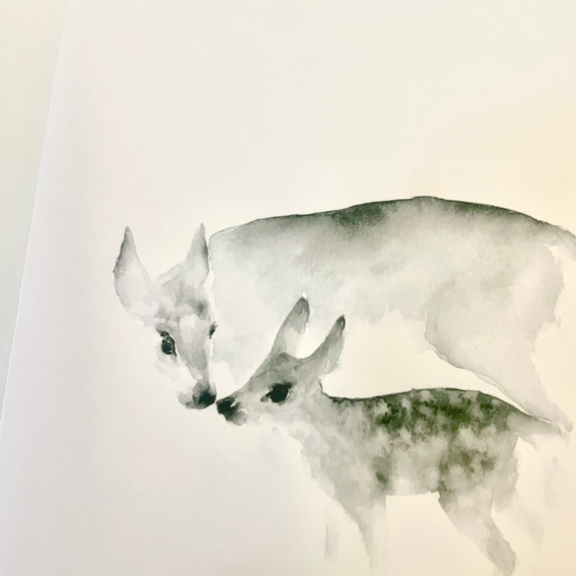 Aquarell Reh mit Kitz Klappkarte// Catherina Türk